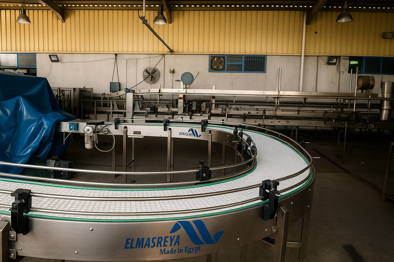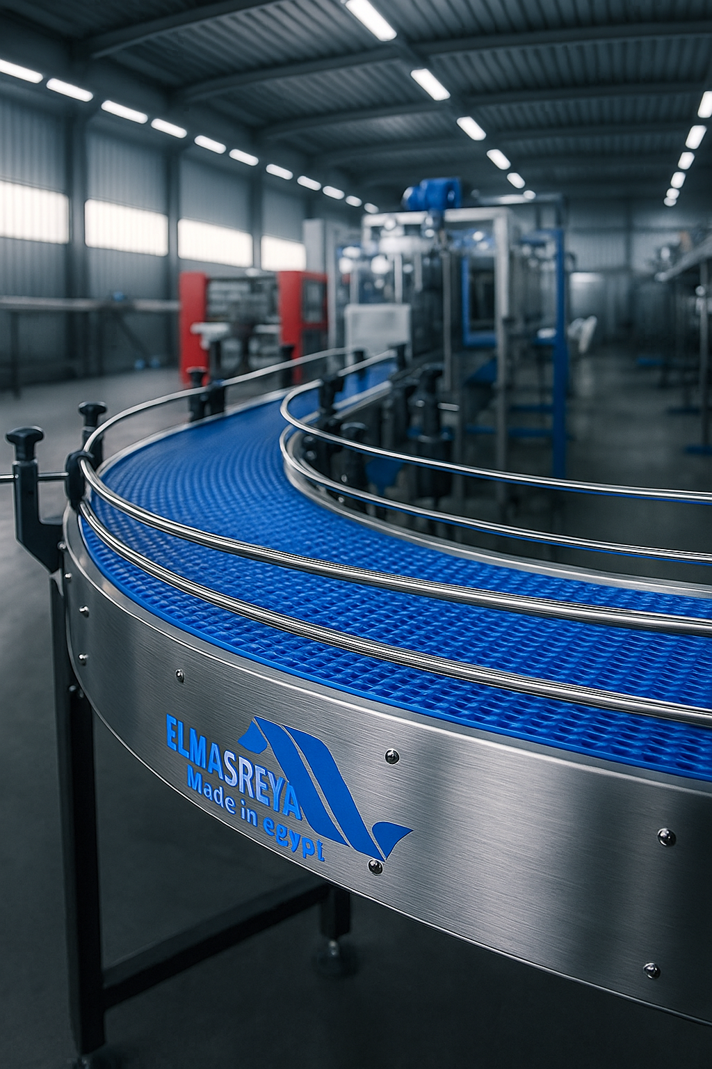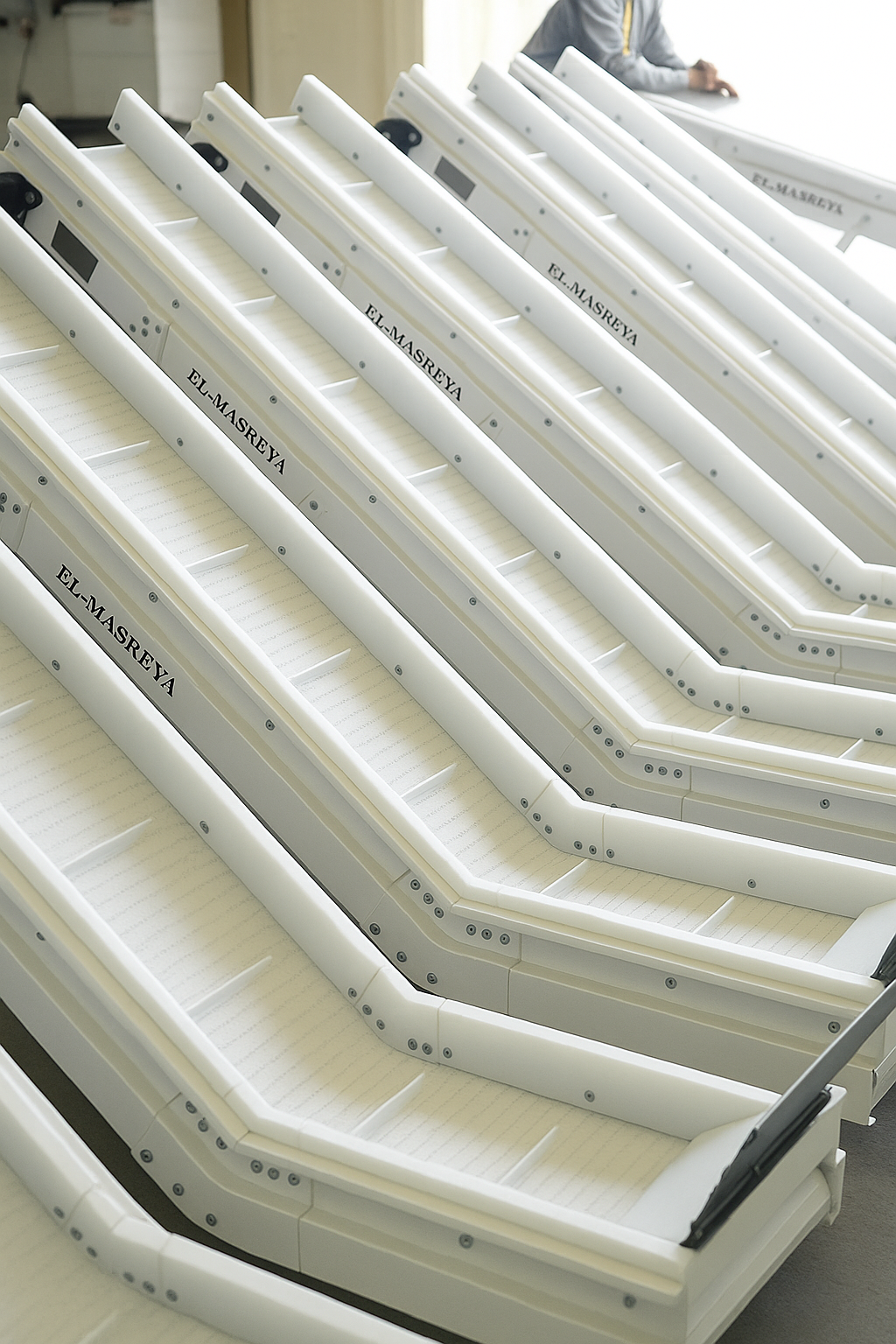 The Modular Belt Conveyor from El-Masrya Industrial Group – High-quality plastic conveyors ideal for the food, pharmaceutical, and packaging industries. Flexible design, easy maintenance, and high resistance to heavy loads and temperature variations.