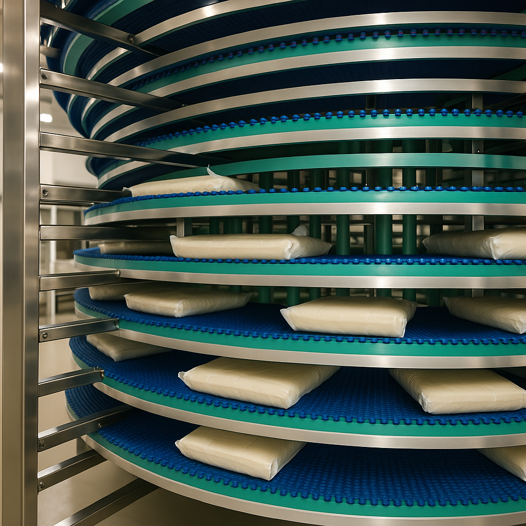 - Integration Belts: Designing and supplying the horizontal conveyors that feed and receive products from the Spiral Conveyor for a complete system.